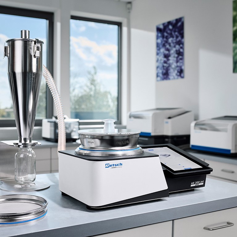 The AS 200 jet is the standard model for 203 mm (8″) sieves, featuring manual or optional automatic vacuum control and is ideal for rapid sieving with the Open Mesh Function. The AS 200 jet pro is an advanced version with integrated weighing and software, enabling fully automated sieving, evaluation, and data handling. The AS 200 jet pharma is a GMP-compliant model designed for regulatory-sensitive laboratories, offering the same all-in-one functionality with validation-ready features.