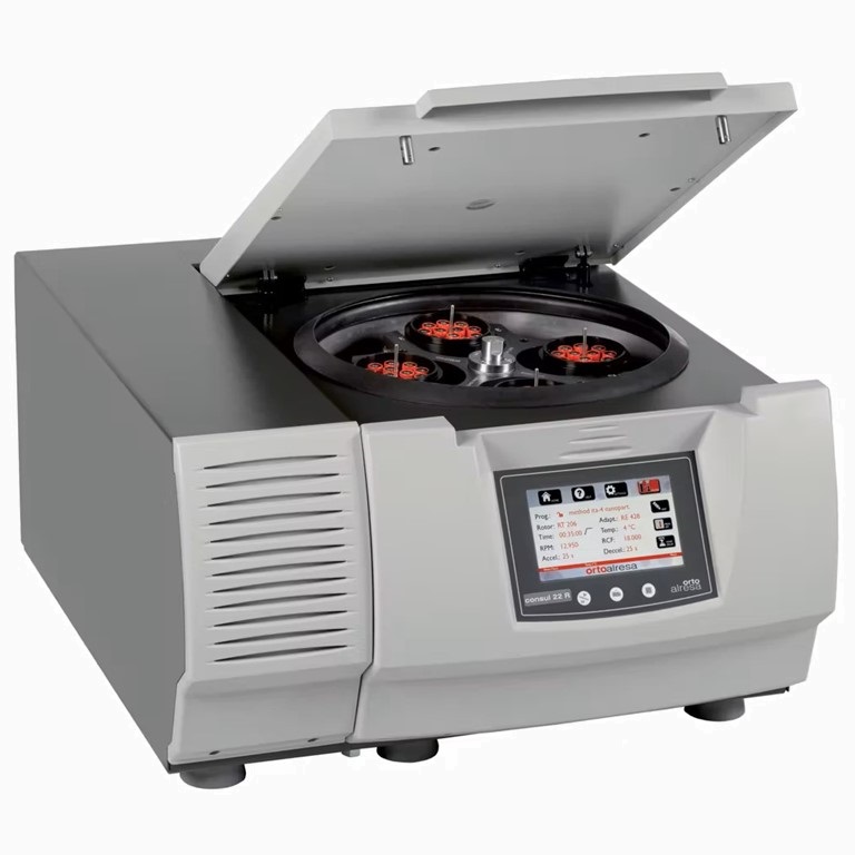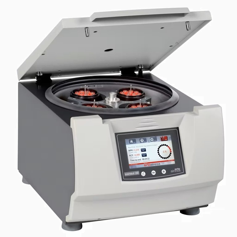 The Consul 22 R is a high-capacity, refrigerated centrifuge designed for laboratories handling temperature-sensitive samples. Combining the same versatility as the Consul 22, it features a TFT color touch screen, programmable cycles, and data export capabilities, allowing complete control over every parameter and ensuring traceability throughout the process. Its broad range of rotors includes swing-out rotors with 400 ml per bucket, microplate rotors, angle-fixed high-speed rotors, and a wide variety of adapters, making it suitable for virtually any sample type.